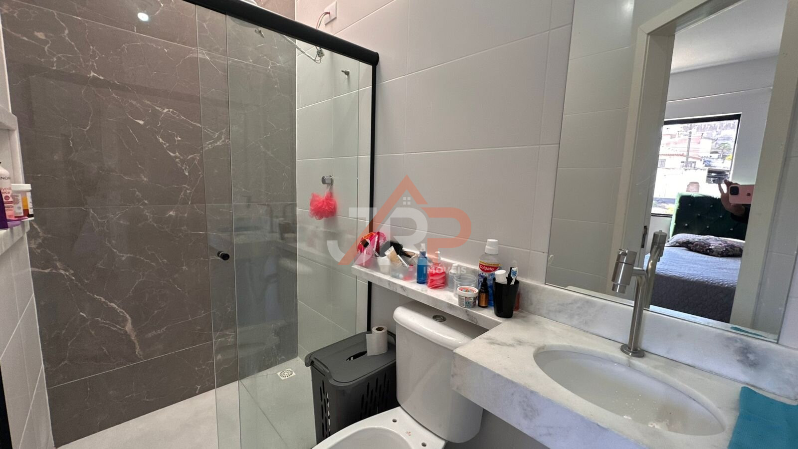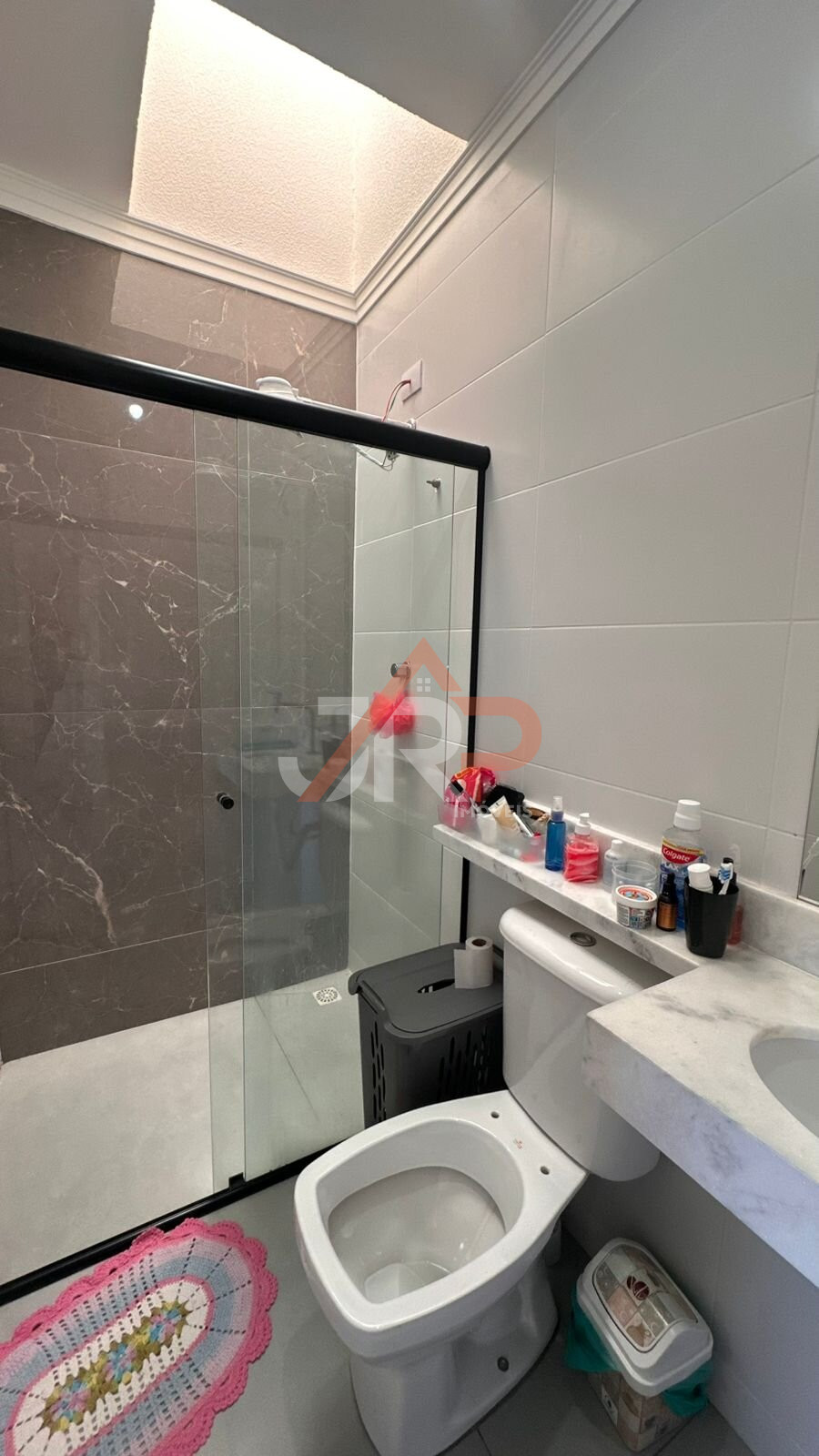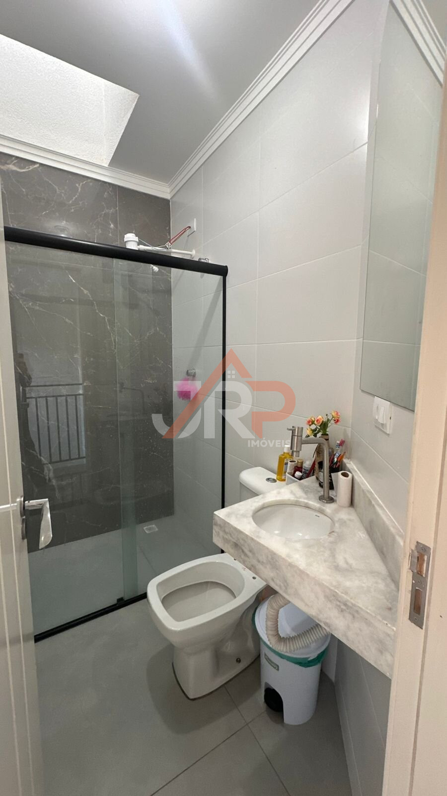 BANHEIRO SOCIAL: Com acabamento moderno e nicho embutido.