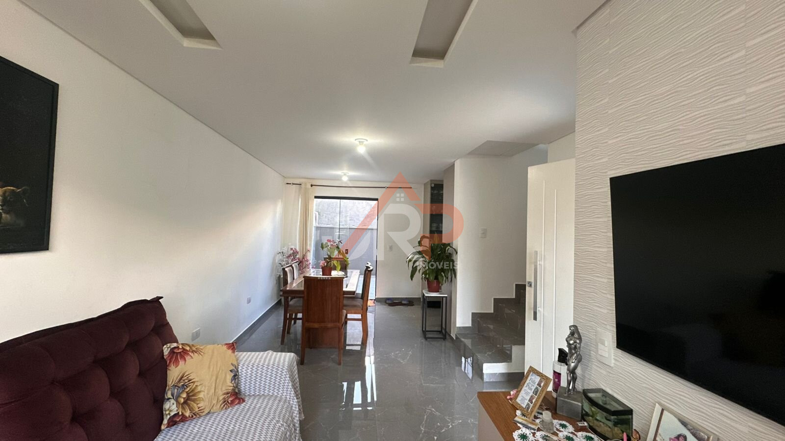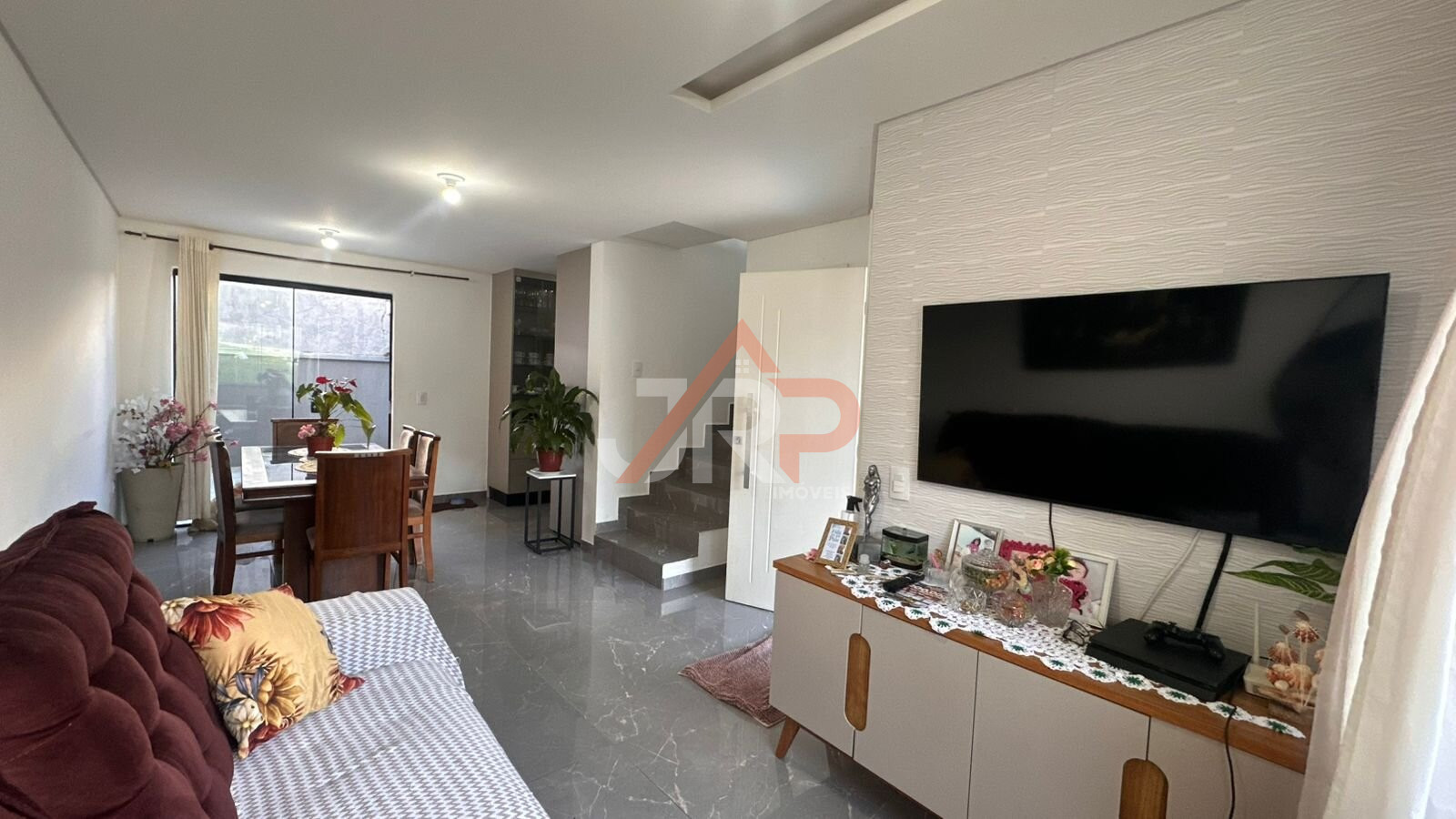LIVING INTEGRADO: Sala de estar e sala de jantar com piso em porcelanato;